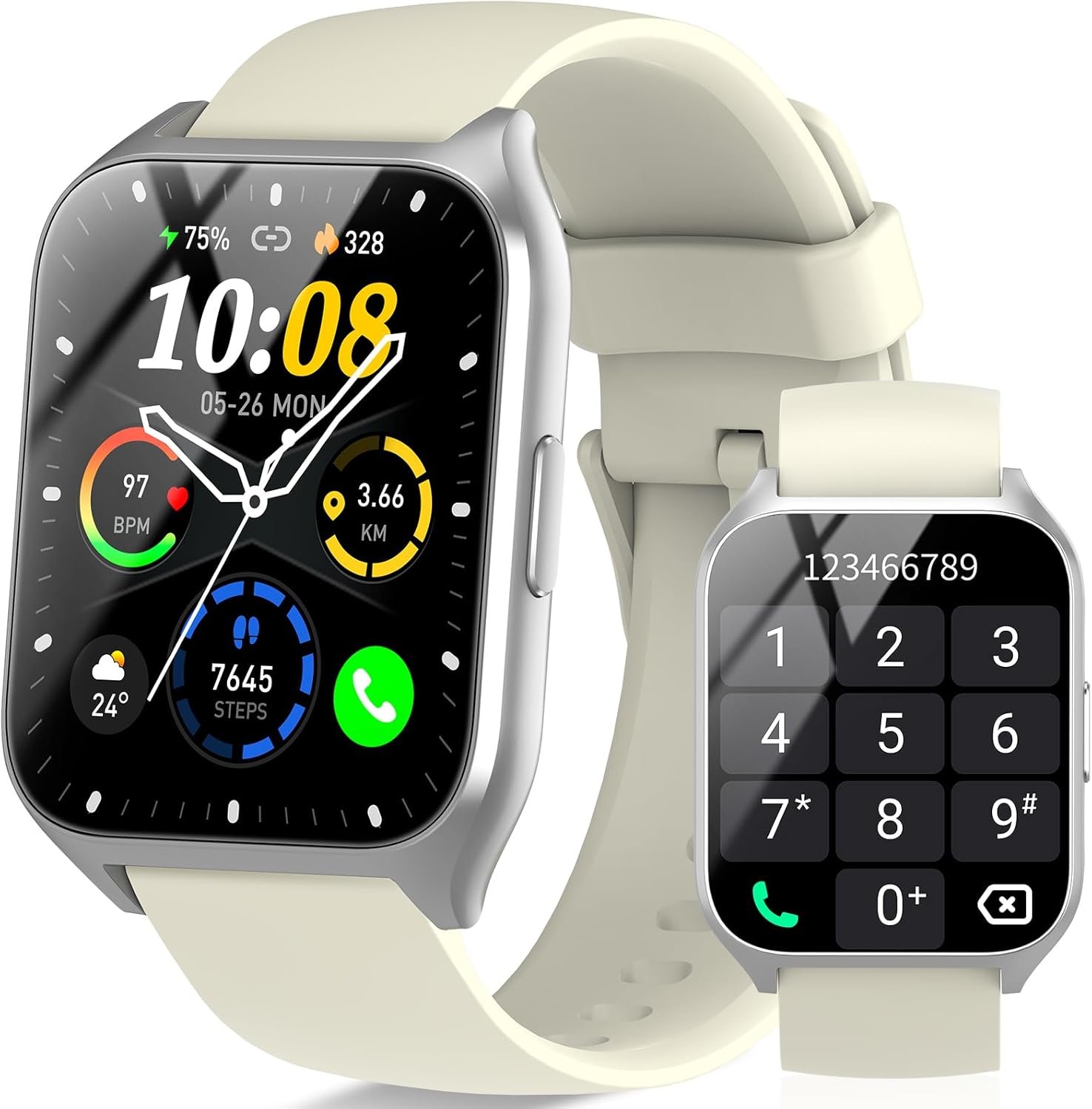 Make Calls & Get Notifications Directly on Your Wrist: Fitness watch stay connected with Bluetooth calling via the built-in microphone and speaker. Check call logs and contacts. Receive alerts for calls, SMS, and apps like Facebook and WhatsApp. Note: smartwatch with call function Call quality may be affected in very noisy environments.