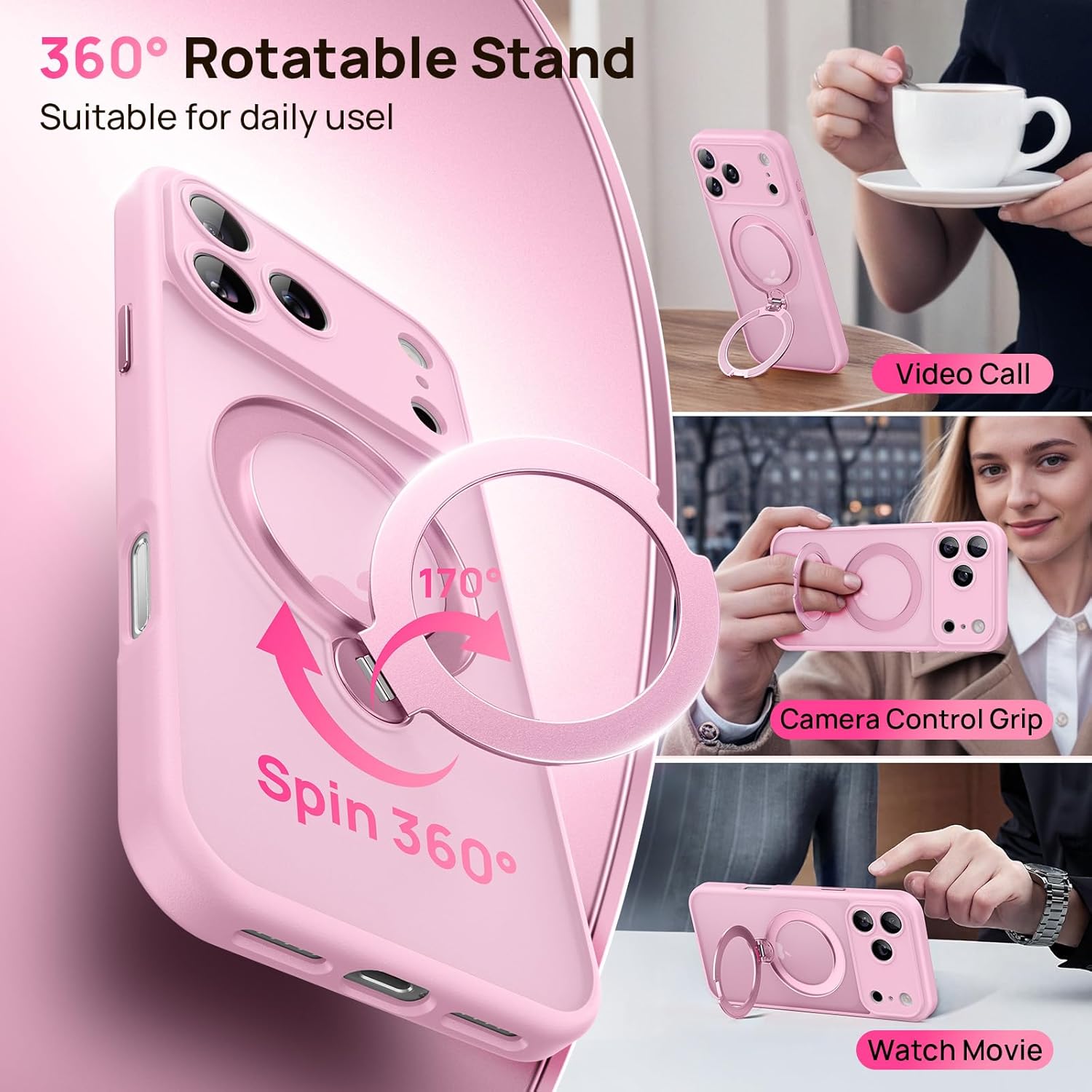 ✨【𝗣𝗶𝗼𝗻𝗲𝗲𝗿𝗶𝗻𝗴 𝟯𝟲𝟬° 𝗦𝗽𝗶𝗻 𝗦𝘁𝗮𝗻𝗱】Compatible with iPhone 17 Pro Max.The case features a rotating stand that rotates smoothly 360°, giving you ultimate flexibility and hands-free viewing anywhere. Whether you’re watching a movie in landscape mode, taking photos in portrait mode, or making video calls on any flat surface, it stays absolutely stable. Undergoing 30,000 durability tests, this case for iPhone 17 Pro Max is reliable and durable, perfectly integrated into your life.