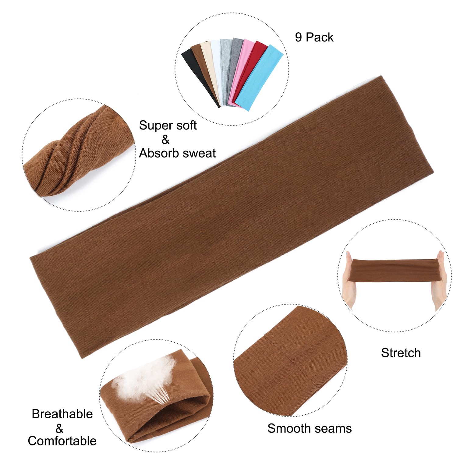【Rich Colors】9 different colors headbands in one set,meet your different needs.let you avoid the trouble of choosing.