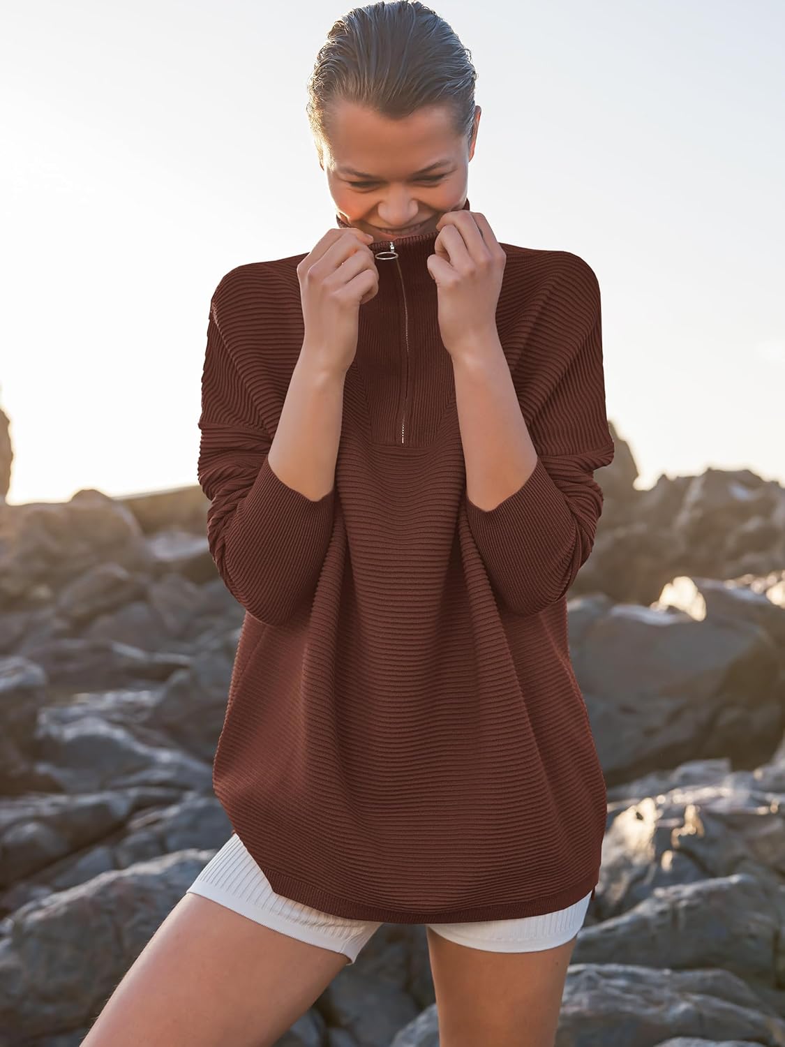 Women Quarter Zip Oversized Casual Loose Rib Knit Cozy Pullover Sweaters Top 2025 Fall Fashion 802Women Quarter Zip Oversized Casual Loose Rib Knit Cozy Pullover Sweaters Top 2025 Fall Fashion 802