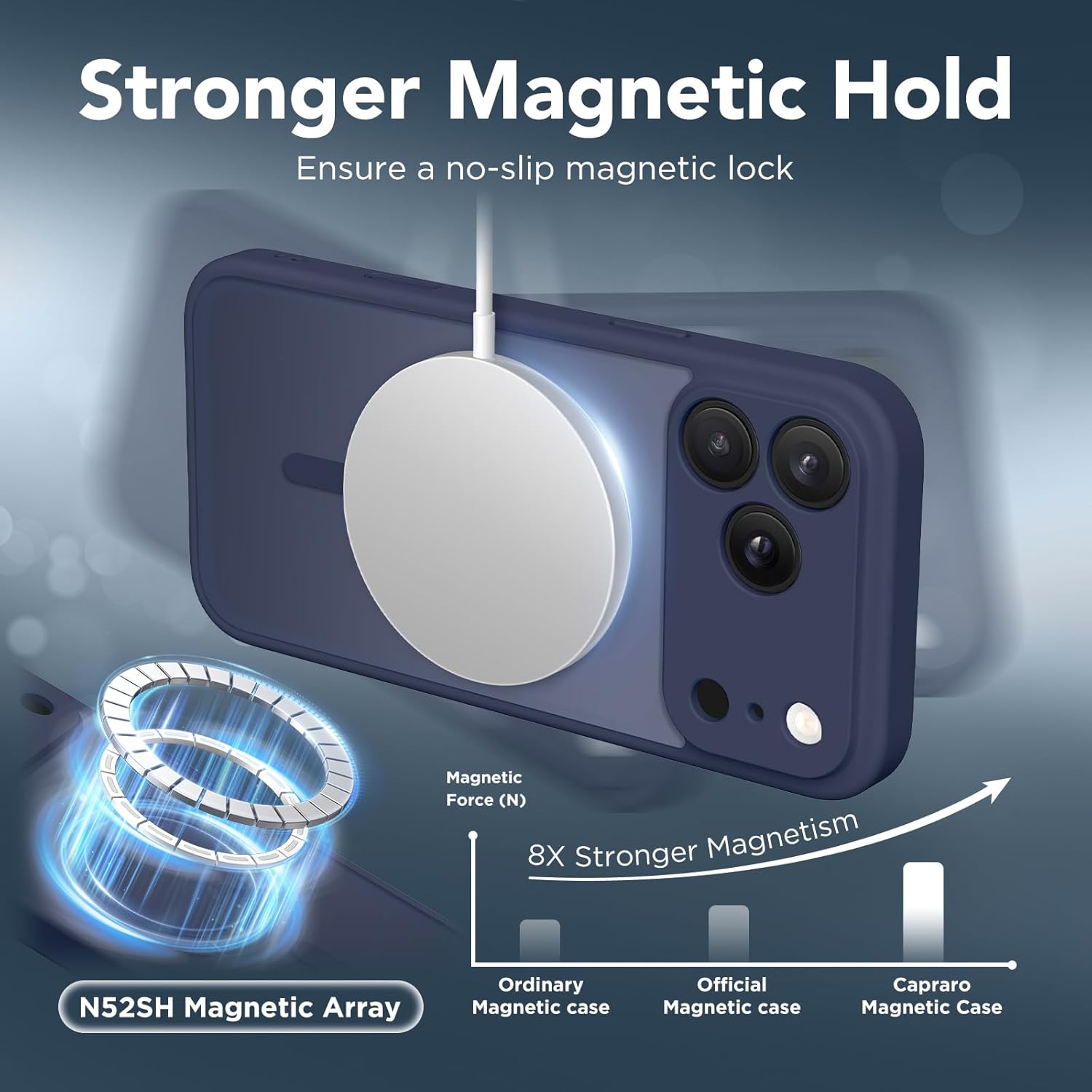 Super Strong Magnetic Lock: Built-in 48 N52 strong magnets, can be aligned and quickly locked, provides a more powerful magnetic force. Compatible With All MagSafe Accessories, Including Magnetic Charger, Car Mount, Wallets, etc;