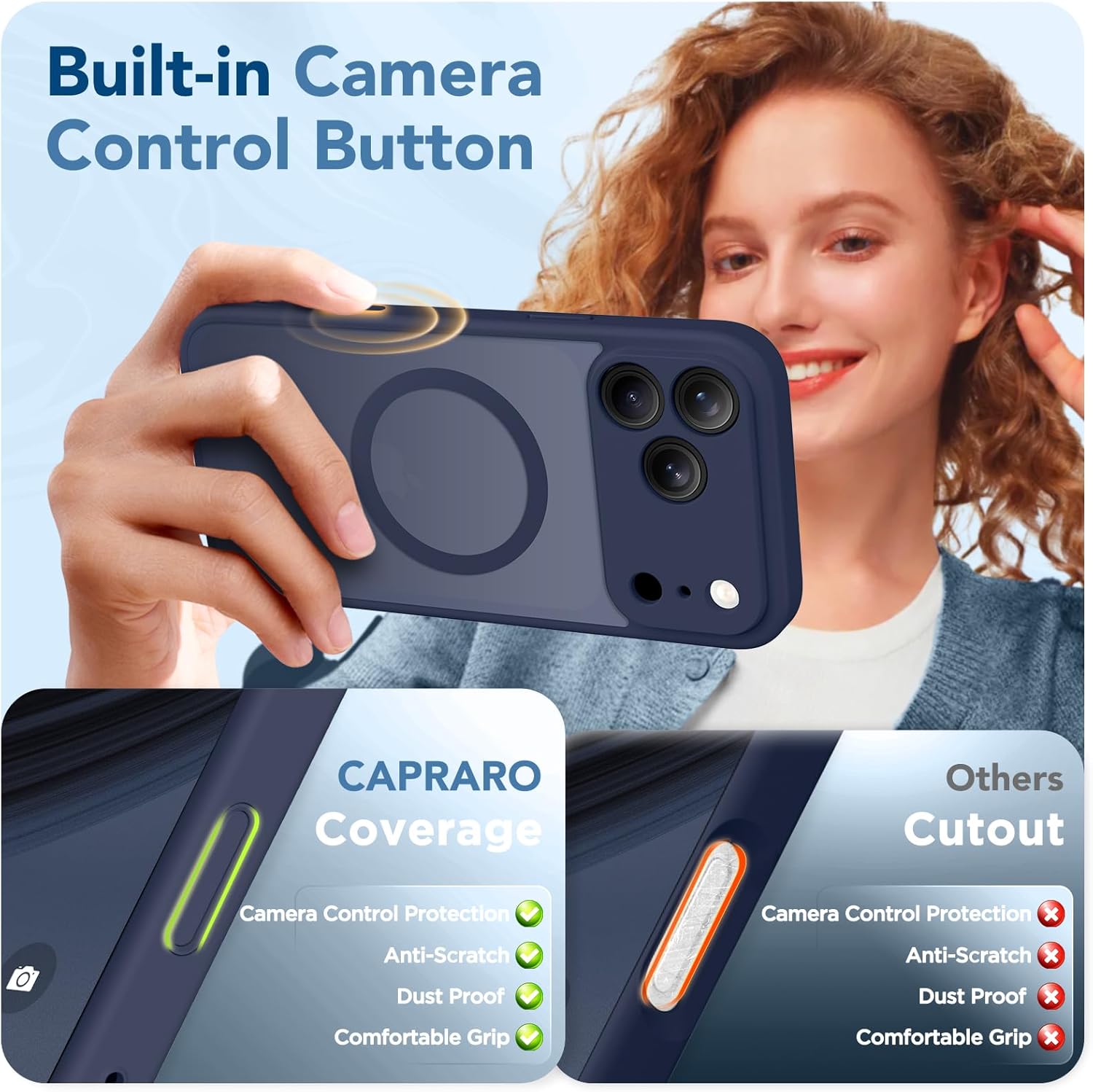 Compatibility & Camera Control Button: Specifically designed for iPhone 17 Pro 6.3 inch (2025 Release). This 17 Pro Case with screen protector features a built-in camera button with full coverage, which offers a smooth and sensitive touch experience and dust-proof protection for the button;