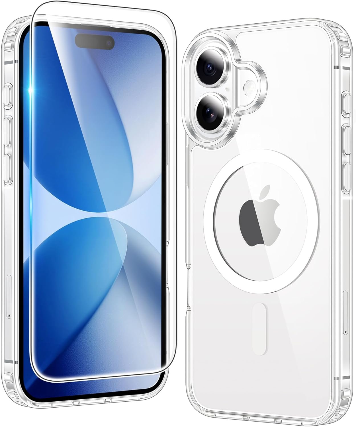 FNTCASE for iPhone 17 Case Clear: Magnetic Transparent Phone Cases with Screen Protector Slim Anti Yellowing Military Grade Drop Protection Rugged Shockproof Protective Cell Phone Cover (Clear)