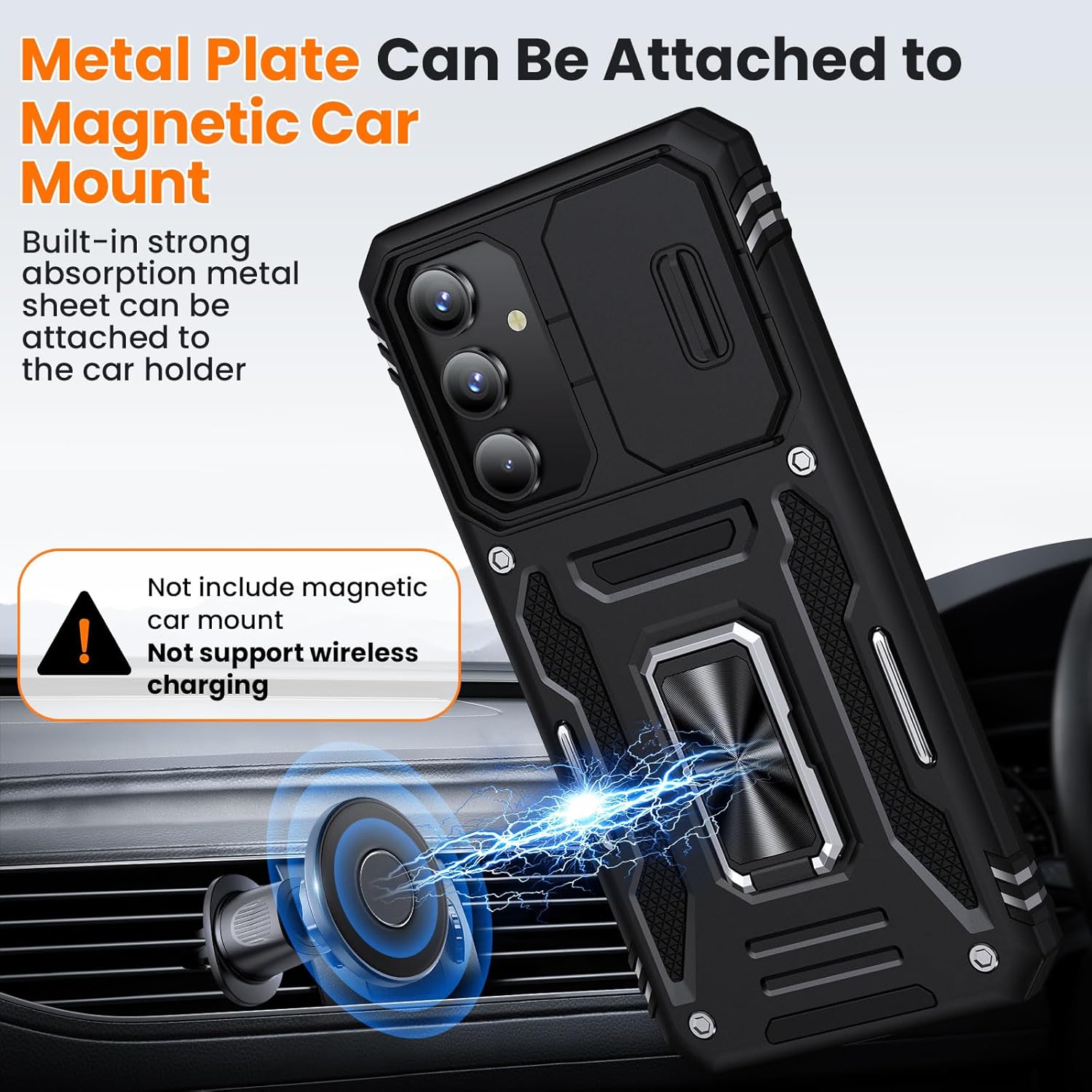 360° Metal Rotatable Ring Kickstand: Case for Samsung A16 features a 360° rotated ring kickstand on the back, smoothly rotate it to position your phone at any viewing angle. The kickstand plate with metal sheets can be firmly attached to the magnetic car mount, freeing your hands during drives.