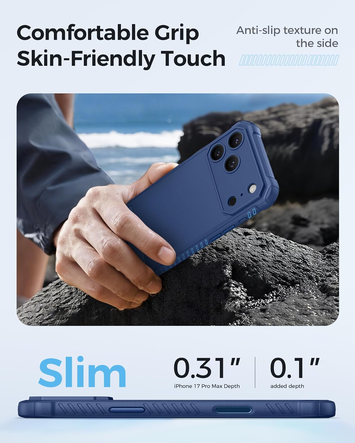 【Camera Control Protection】This iPhone 17 Pro Max case seamlessly integrates a unique camera control button into its design. The new camera control button supports clicks, presses, or swipes to quickly launch the camera, switch modes, or adjust zoom. It protects your phone while maintaining responsive control, letting you effortlessly capture every precious moment. Plus, it effectively shields the original capacitive button from scratches and keeps dust out of the button