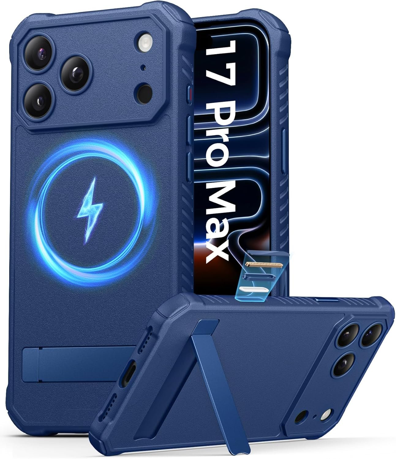 for iPhone 17 Pro Max Case with Stand & Compatible with MagSafe & Camera Control Capture Button, Rugged Shockproof Back Cover & Silicone Edges Phone Case for iPhone 17 Pro Max 6.9″ 2025, Blue