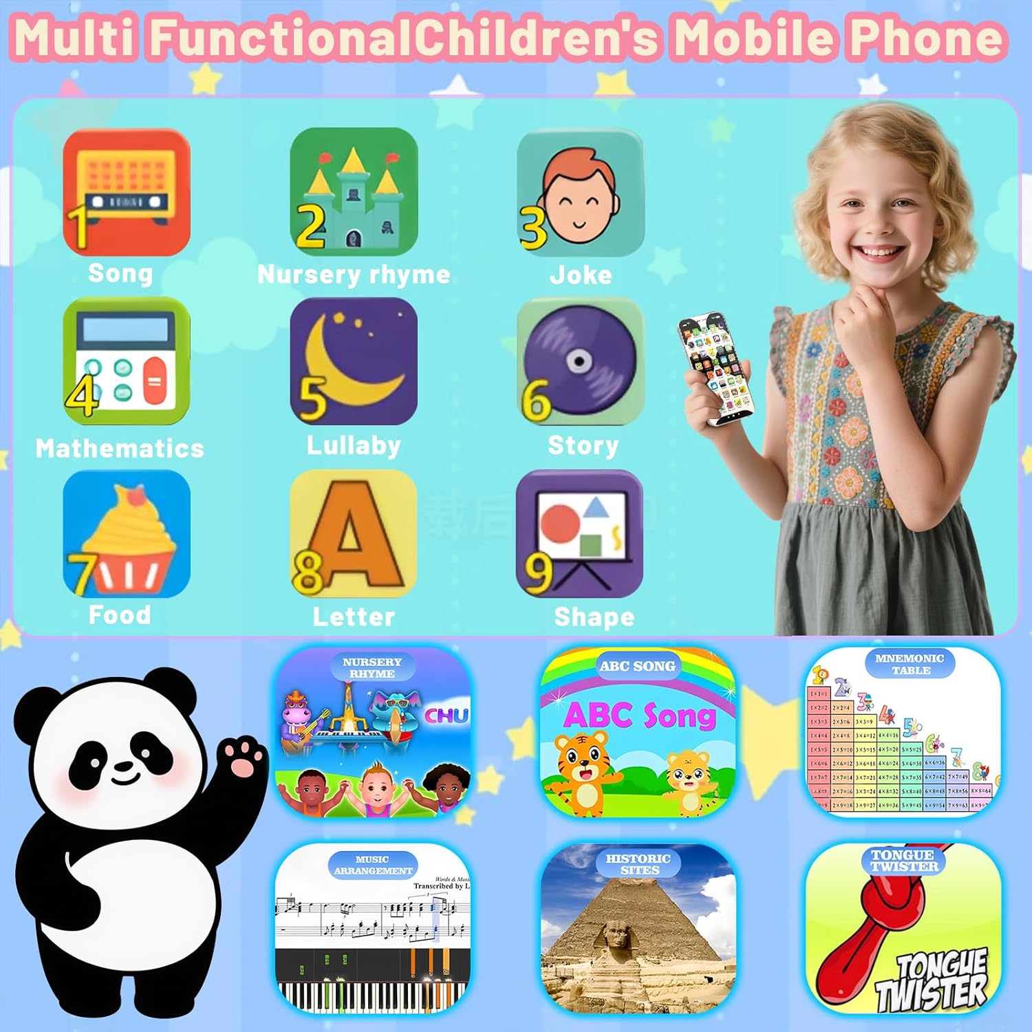 【Perfect Gift for Kids】This kids phone comes with a USB charging cable and provides hours of playtime on a full charge. And it makes for the perfect birthday, Easter, Christmas gift, festival, or holiday gift for boys and girls aged 0~5. Your child will have their first own fake phone.