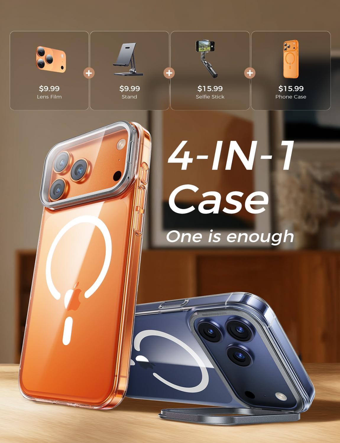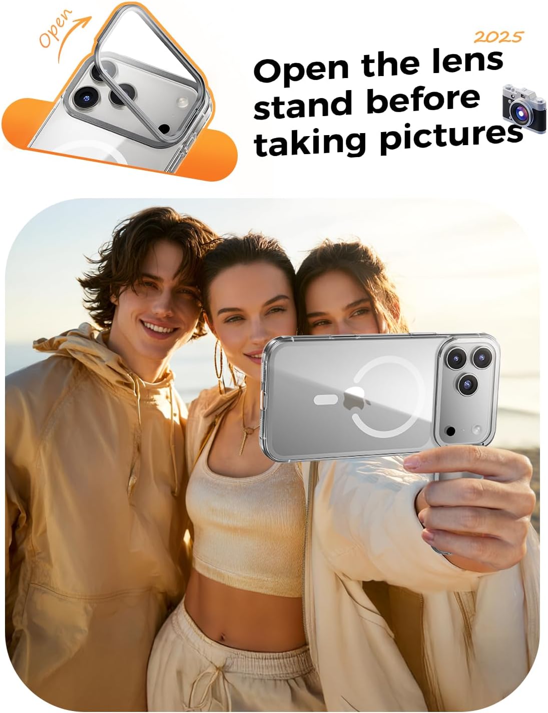 180° Foldable Lens Holder: Designed for the iPhone 17 Pro max case. Adjustable from 0-180 degree, the hinge on the lens stand has passed rigorous lab tests and remains stable after 3,000 open-close cycles