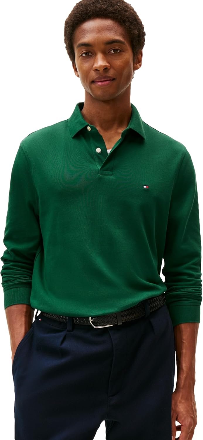 Tommy Hilfiger Men’s Long Sleeve Polo Shirts in Regular Fit with Stretch and Organic Pique Cotton
