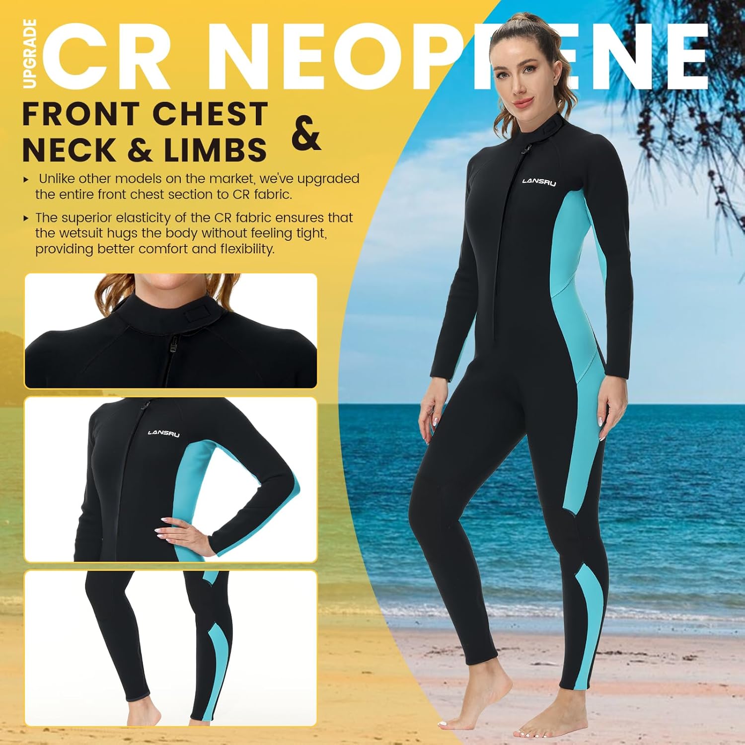 Advanced Insulation: Lansru’s 5MM SCR NEOPRENE wetsuits excel in elasticity and warmth, surpassing those made with SBR neoprene commonly used by other brands. Experience a snug fit that minimizes gaps and maximizes warmth. Neoprene absorbs water and molds closely to your body, forming a thin layer that regulates body temperature and keeps you warm in cold waters. This enhanced neoprene allows water enthusiasts to prolong their time in the water and fully embrace their aquatic adventures.
