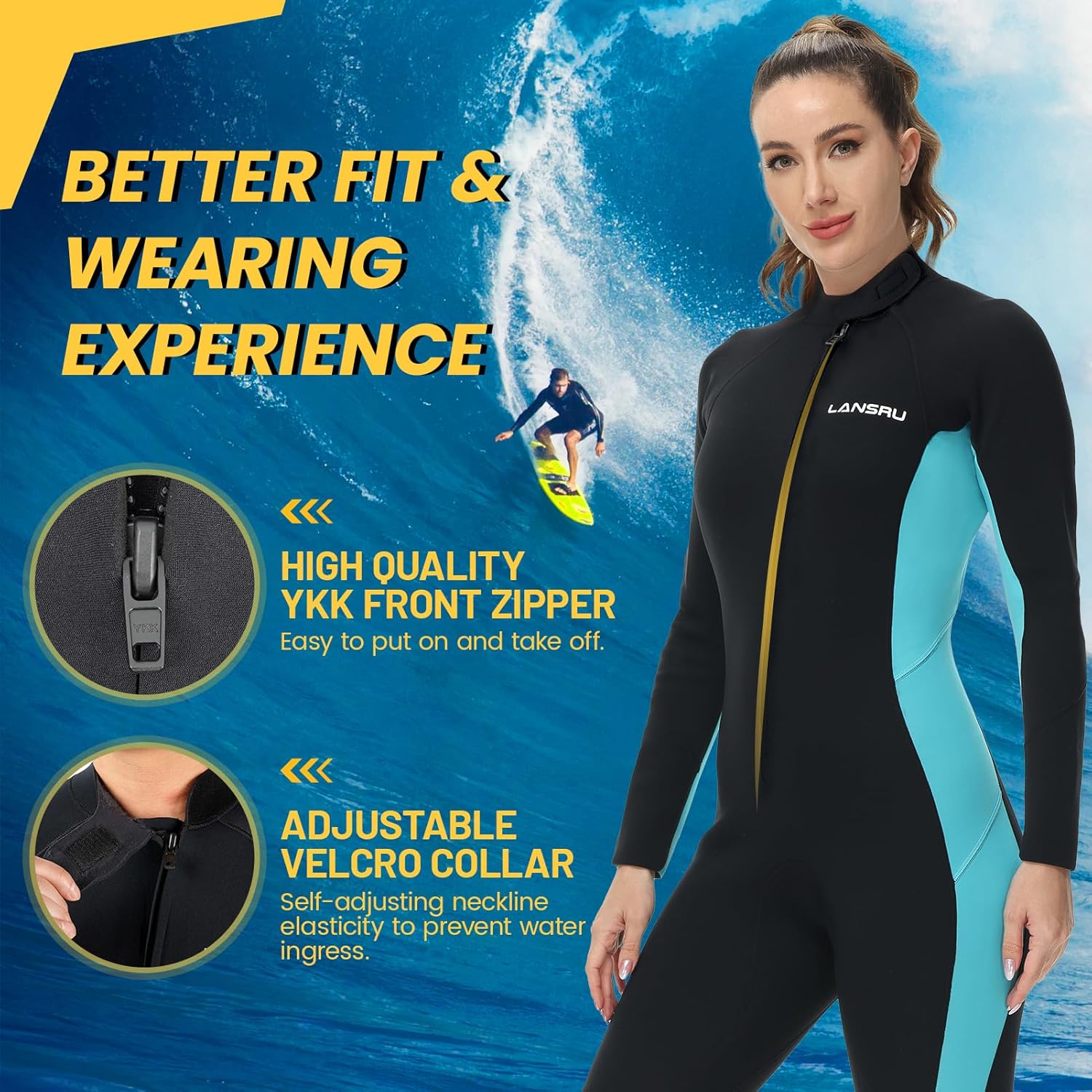 Effortless Donning & Durability: Our surf suit features a premium YKK front zip renowned for its smoothness and resilience, ensure hassle-free self-dressing and effortless removal. Crafted with nylon outer fabric, our diving suit exhibits remarkable abrasion resistance and durability, effectively minimizing fabric tears and enhancing its lifespan.