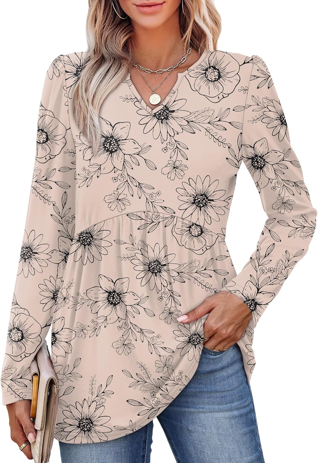 Fall Outfits for Women 2025 Long Sleeve V Neck Babydoll Tops Fashion Clothing